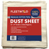 Cotton with plastic back up dust sheet. Washable and reusable projects surfaces from dust, dirt, and paint splashes